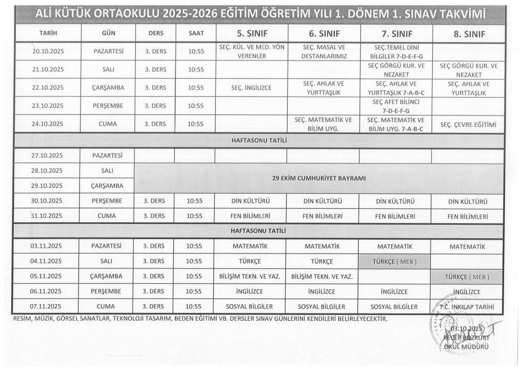 Sınav takvimini PDF olarak indirmek için tıklayınız.